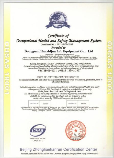 • Chine DONGGUAN HUAZHIJUN LAB EQUIPMENT CO., LTD Les certifications